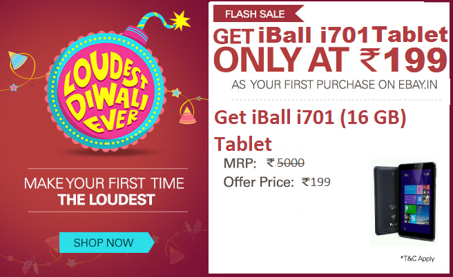 Hello Friends I'm Back With New Loot Offer. Now a days eBay giving so much offers to their New users. So theres another new offer for new users. Ebay giving again a flash sale where u will get a iBall-i701 Tablet only @199. Yes, you heard it right guyz only @199. So, Hurry up..!!